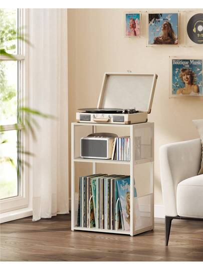 VASAGLE Record Player Stand, 3-Tier Side Table, Vinyl Record Storage Up To 100 Albums, End Table For Living Room, Bedroom