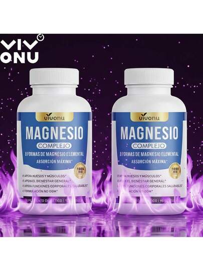VIVONU 1000mg Magnesium Composite Capsule, Containing 8 Elements, Including Glycine, Citrate, Malate, Calcium Taurate, Oxides, Carbonates, Aspartic Acid, Taurine Bone, Muscle, Recovery, Energy, Vegan, Non GMO, 90 Capsules