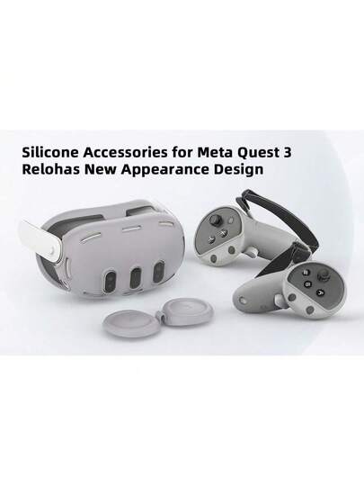 适用于 Meta/Oculus Quest 3 的 VR 硅胶保护套套装,升级设计,为 Quest 3 提供全面保护,5 合 1 VR 配件保护套,生日和圣诞节的理想礼物(不含 VR 耳机和控制器)(灰色) - 灰色 - 查看 1