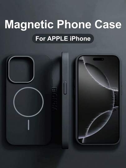 VRNOEI 时尚超薄圆形磁吸手机壳适用于 16 14 11 12 13 15 17 Pro Max Air 手机壳磁吸无线充电全覆盖配件 - 黑色 - 查看 1