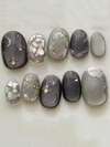 10片/套 椭圆形灰色猫眼图案手工美甲贴纸,饰以星月图案,优雅精致。银色点缀更添亮点!整体风格成熟时尚,易于搭配各种服饰。适合派对、约会和日常佩戴。美甲用品