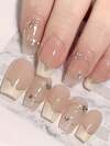 24片装新鲜草莓心形3D立体美甲贴片 - 杏仁形 - 中等长度,可移除美甲贴纸,适合女性美甲用品
