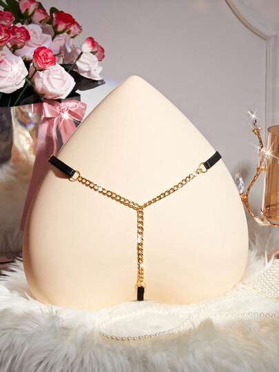 情人节礼物:纯色蕾丝链条丁字裤,性感低腰半透明T字后背内裤,女士性感内衣 - 黑色 - 查看 1