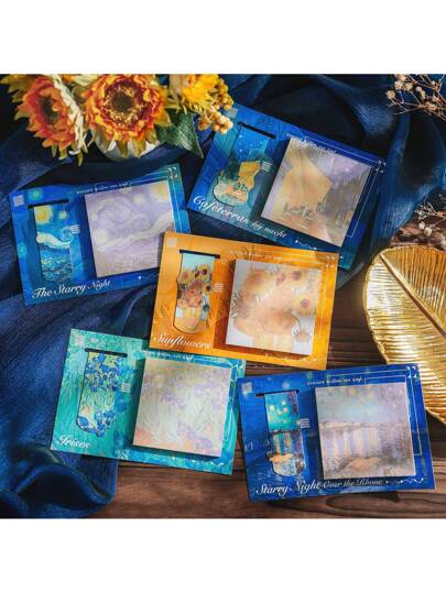 梵高画作创意书签和便签套装,世界名画《星夜》睡莲向日葵鸢尾日出印象便签,学习用品,返校季 - 均碼 - 查看 10