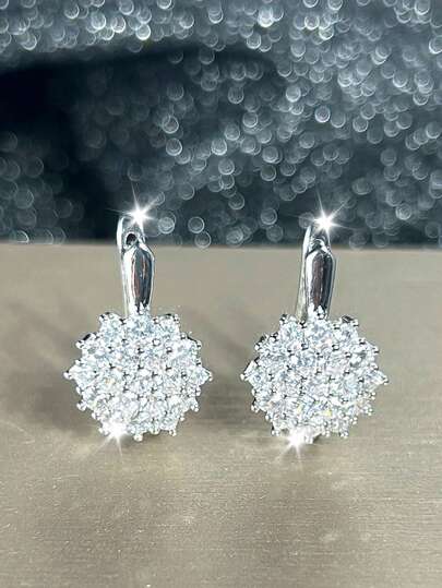 Vanel 1 对银色向日葵锆石耳钉,闪亮锆石耳环,适合送给女友、新娘派对伴娘的珠宝礼物 - 銀色 - 查看 1