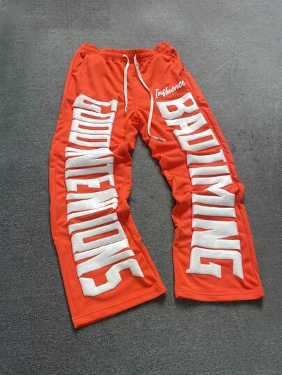 PAVTROS 男士时尚街头字母立体印花抽绳宽松卫衣裤,风格灵感源自ins。男士时尚长裤,适合春夏外出、度假、休闲、家庭聚会、音乐节、学校等场合。可作为礼物送给家人、老公、男朋友,男士橙色慢跑裤、橙色运动裤、男士街头潮流裤,适合狂欢 - 橘色 - 查看 1