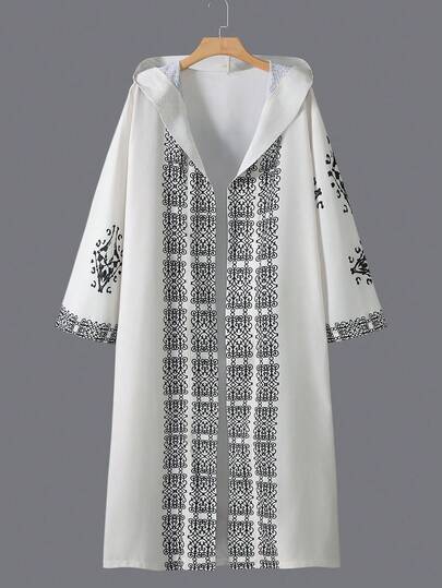 Velminro 男士长款连帽和服浴袍家居服秋冬宽松休闲睡衣 - 米色 - 查看 1