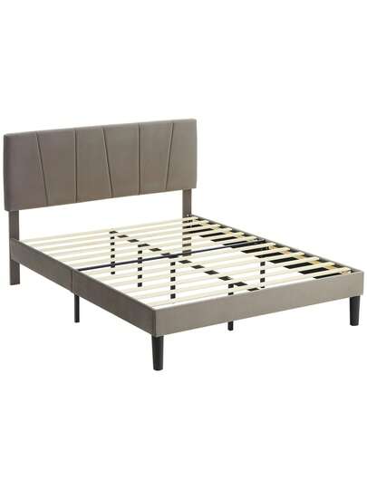 Velvet-Feel Grey Double Bed Frame With Stylish Headboard - Chic And Comfortable Design For Modern Bedrooms - 均碼 - 查看 1