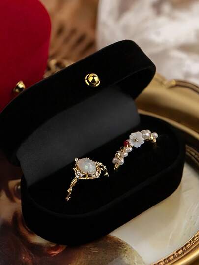 天鹅绒椭圆形戒指盒,戒指展示盒,适用于婚礼/求婚/订婚/仪式,加宽的卡槽可容纳单枚或双枚戒指、耳环,珠宝礼品收纳盒(灰色),情人节礼物 - 多色 - 查看 17