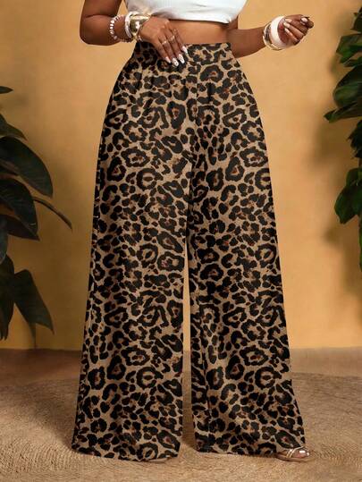 Veslaya 2026春夏新款休闲日常穿着及海滩篝火派对宽松大码女式长裤,饰有彩色豹纹元素