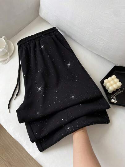 Vibekara 大码女式束腰银色亮片装饰休闲裤,春夏