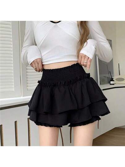 Mini Skirt Cute  Balletcore Elastic High Waist Ball Gown Ruffle Patchwork Lolita Skirt Short Korean Sweet Y2K Women Clothing - 黑色 - 查看 1