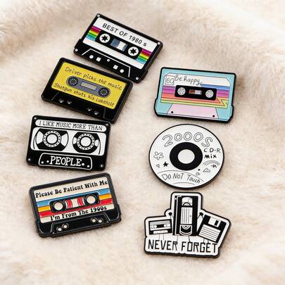 复古卡带CD软珐琅胸针,男女通用,可作衣服徽章、珠宝领针、包包背包配饰。