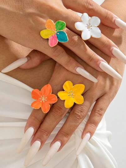 1 件带有金属装饰的花形 3D 戒指,百搭设计,营造夏日氛围,是送给朋友和女朋友的绝佳礼物 - 花朵戒指 - 查看 3