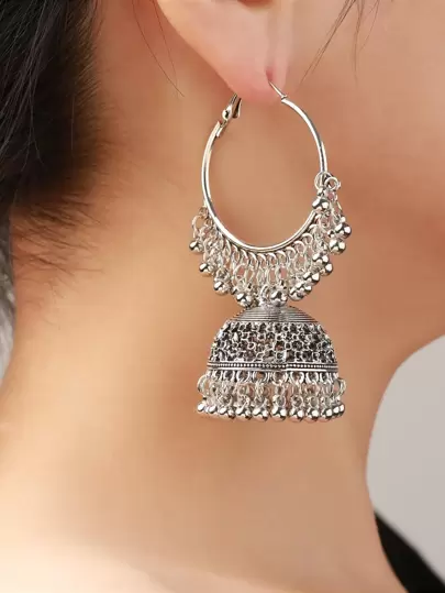 女士复古风格时尚复古耳环 - 復古銀色 - 查看 1