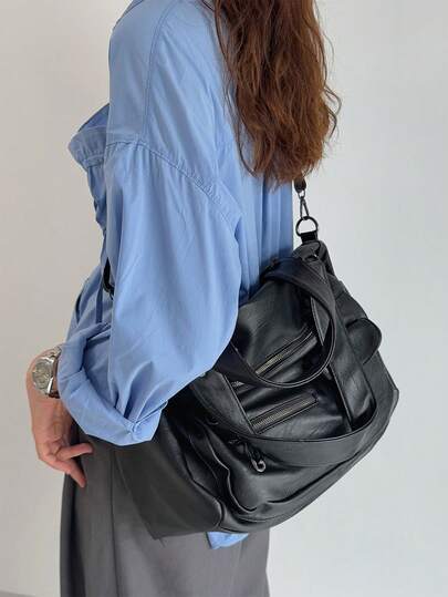 复古朋克风格女式摩托车包,个性化复古单肩包,带多个拉链的斜挎包 - 彩色 - 查看 9