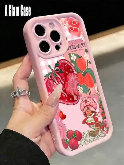 Vintage Strawberry Girl & Gingham Lace Collage Print Pink Frame Phone Case, Soft TPU Cover. It Is Compatible With Galaxy Models Including Compatible For Galaxy S25, S24, S23, S22, S21 PLUS, FE And Ultra,Galaxy A33 Compatible With For Iphone17 Pro Max, 16, 15, 14 And 13. It Makes A Perfect Gift For Birthdays, Holidays, New Year And Valentine's Day.