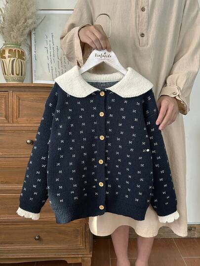 Vintaside Kids 女童圆点针织开衫夹克 - 深灰色 - 查看 4