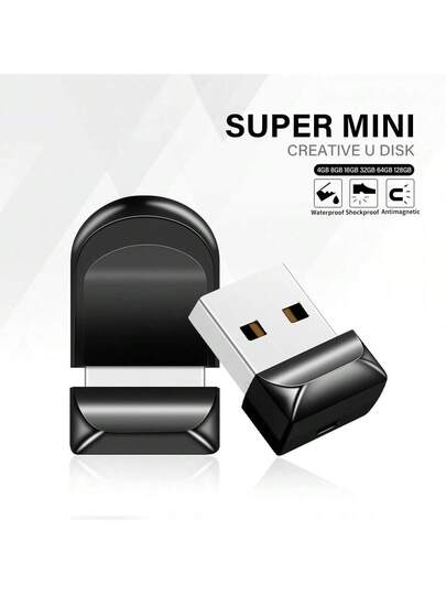超迷你 USB 闪存盘 64GB 128GB 记忆棒驱动器 个性化便携 U 盘 适用于电脑、汽车音响、电视 - 黑色 - 查看 1