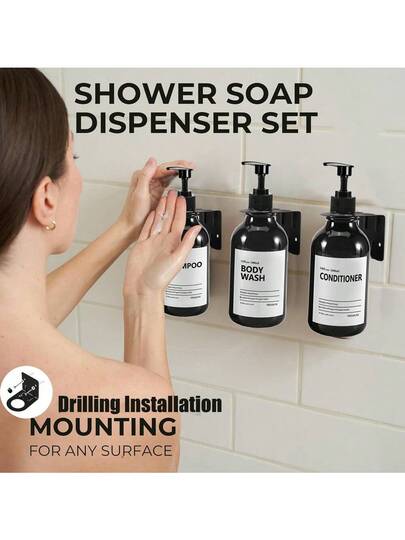 WCIC 16.9 盎司/500 毫升亮黑色洗发水和护发素分配器套装,瓶子 + 贴纸 + 木托盘/硅胶托盘/支架,带标签的沐浴皂分配器,可再填充的塑料洗发水瓶 - 沐浴露/洗发水/护发素/洗手液/洗洁精/乳液 - 彩色 - 查看 17