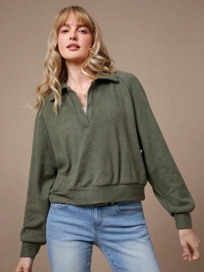 WESTFADE 春季拉绒罗纹针织长款插肩袖高领上衣 - 橄欖綠 - 查看 6