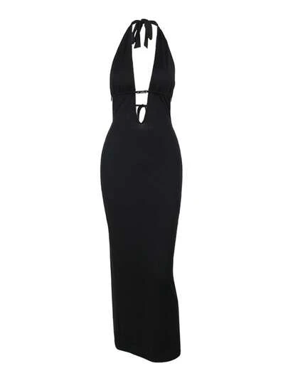 WOWDARK 女士深V领露背吊带连衣裙,适合秋季 - 黑色 - 查看 1