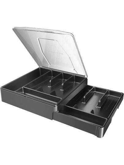 WSXC Double Layer Silverware Tray With Lid Drawer Organizer For Utensil Tray Cutlery Storage Holder With Cover Black