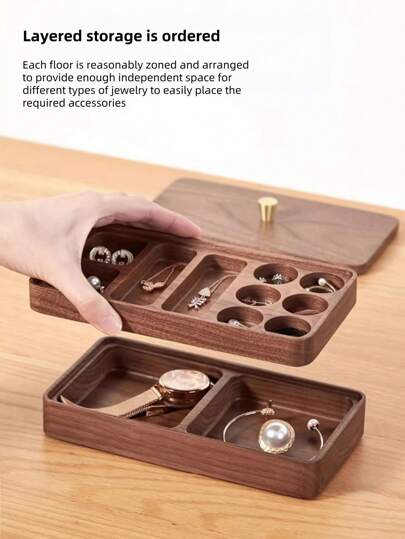 胡桃木色双层珠宝盒耳环项链等配饰收纳盒女士木质珠宝收纳盒适合情人节生日礼物 - 彩色 - 查看 11