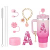 4件套A-Z杯子配件套装(30-40盎司) - 包括:1个吸管盖、1个字母挂饰、1个亮面硅胶杯底保护垫、1个杯子字母贴纸