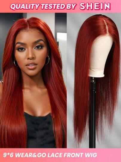 Wear&Go 假发 9*6 红棕色假发彩色无胶预切蕾丝直发蕾丝闭合假发,带预漂白结,Wear&GO 假发初学者友好型人发假发 180 密度分缝最大假发 - S33 - 查看 9