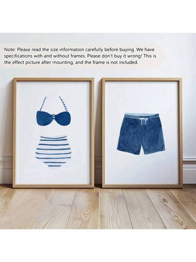 2 件/套无框水彩复古风格泳衣艺术帆布画,海军蓝和白色泳衣艺术,海滨别墅装饰,湖畔别墅墙壁艺术,儿童房装饰,海报,墙壁艺术,房间装饰用品,沿海装饰墙壁艺术 - 彩色 - 查看 15