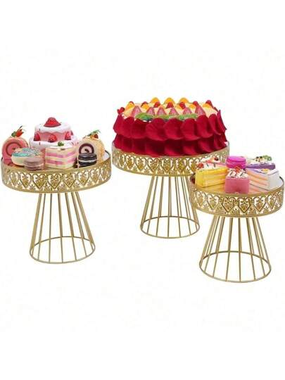 Gold Cake Stand Set Of 3,Metal Mirror Cake Stand Cake Pedestal 8"/10"/12",Cupcake Holders For Dessert Table Candy Dessert Display Stands For Birthday Wedding Party - 金高1 - 查看 3