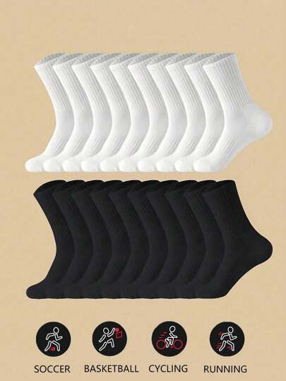 5双黑白加厚男女冬季袜子,时尚休闲舒适透气防臭,户外运动跑步健身压缩及膝袜,黑白高筒袜,商务休闲度假适用,2/6/10/20/30/60双 - 彩色 - 查看 1