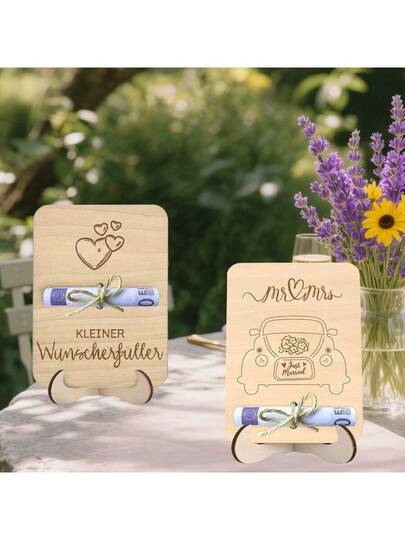 婚礼季,MR&MRS,Wunscherfuller 木制钱罐现金礼品包装,婚礼祝福礼物,生日礼物,结婚周年纪念,婚礼派对装饰,家居房间装饰,桌面摆件 - 原木色 - 查看 14
