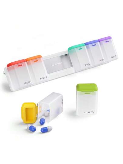 磁性每周药丸整理器,旅行药盒,每日一次药物分配器,轻松的药物管理旅行和每日药丸储存(31 * 248 * 49mm) - 彩色 - 查看 1