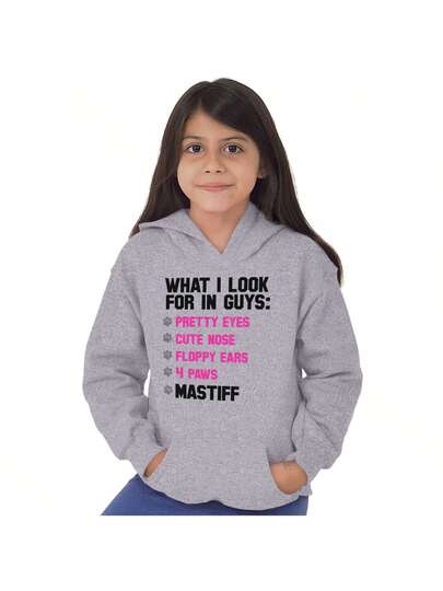 What I Look In Guys Mastiff Dog Lover Kids Hoodie Sweatshirt Girls - Sport Grey - 查看 1