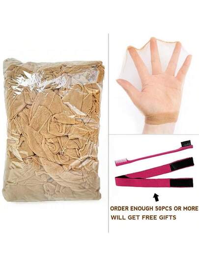 批发高清假发帽 高品质透明高清发网 编织尼龙弹力蕾丝前假发帽 男女通用 浅棕色 - 杏色 - 查看 7