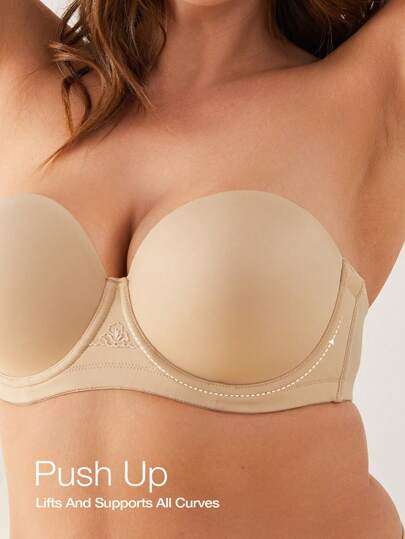 WINGSLOVE 大码女士无肩带钢圈聚拢文胸 - 杏色 - 查看 1