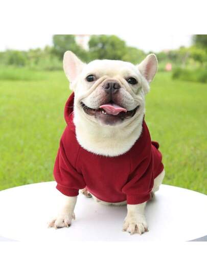 冬季運動衫、牛仔口袋、兩腿衣服、運動風格寵物衣服、狗貓寵物衣服及用品 - 酒紅色 - 查看 1