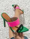 女士尖头穆勒细高跟鞋,时尚高端派对,户外,优雅闪亮石纹性感银色一脚蹬鞋