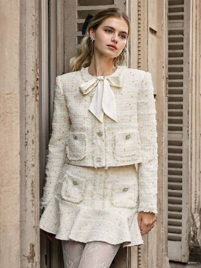 Enchnt 女士秋季优雅系带夹克 - 白色 - 查看 15