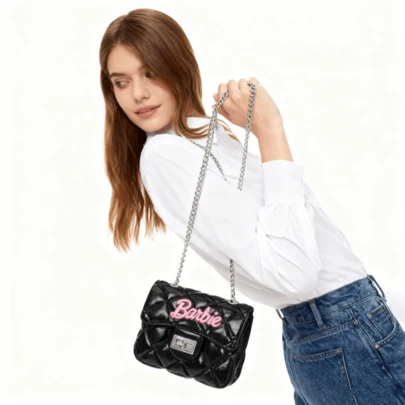 芭比系列果冻包 - 时尚女士斜挎包、迷你单肩包、大容量手机零钱包、化妆品收纳小方包、生日礼物 - 黑色 - 查看 1