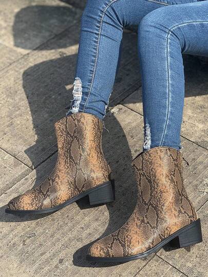6. 女性尖頭薄鞋底蛇印花踝靴