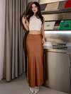 Bris Aura 女士缎面及地鱼尾裙,百搭日常棕色半身裙