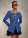 Aralina 靛蓝色牛仔泡泡袖纽扣休闲西部衬衫