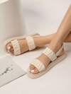 女士简约拖鞋,海滩度假休闲露趾厚底鞋,舒适平底时尚凉鞋