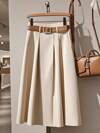 SHEIN Franclia 女式优雅通勤纯色大口袋A字裙,秋季