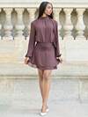 Mima John 优雅纯色收腰长袖迷你连衣裙(女款)