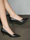 女士尖头凉鞋 - 舒适低跟,夏季PU鞋面搭配橡胶鞋底,百搭黑色休闲正装鞋款,厚底设计,优雅造型,耐穿轻便,适合办公室穿着,优雅,猫跟,粗跟