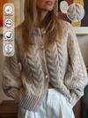 纯色休闲罗纹纽扣圆领插肩袖针织开衫毛衣,适合秋冬季节穿着,休闲、复古、波西米亚风、新秋风